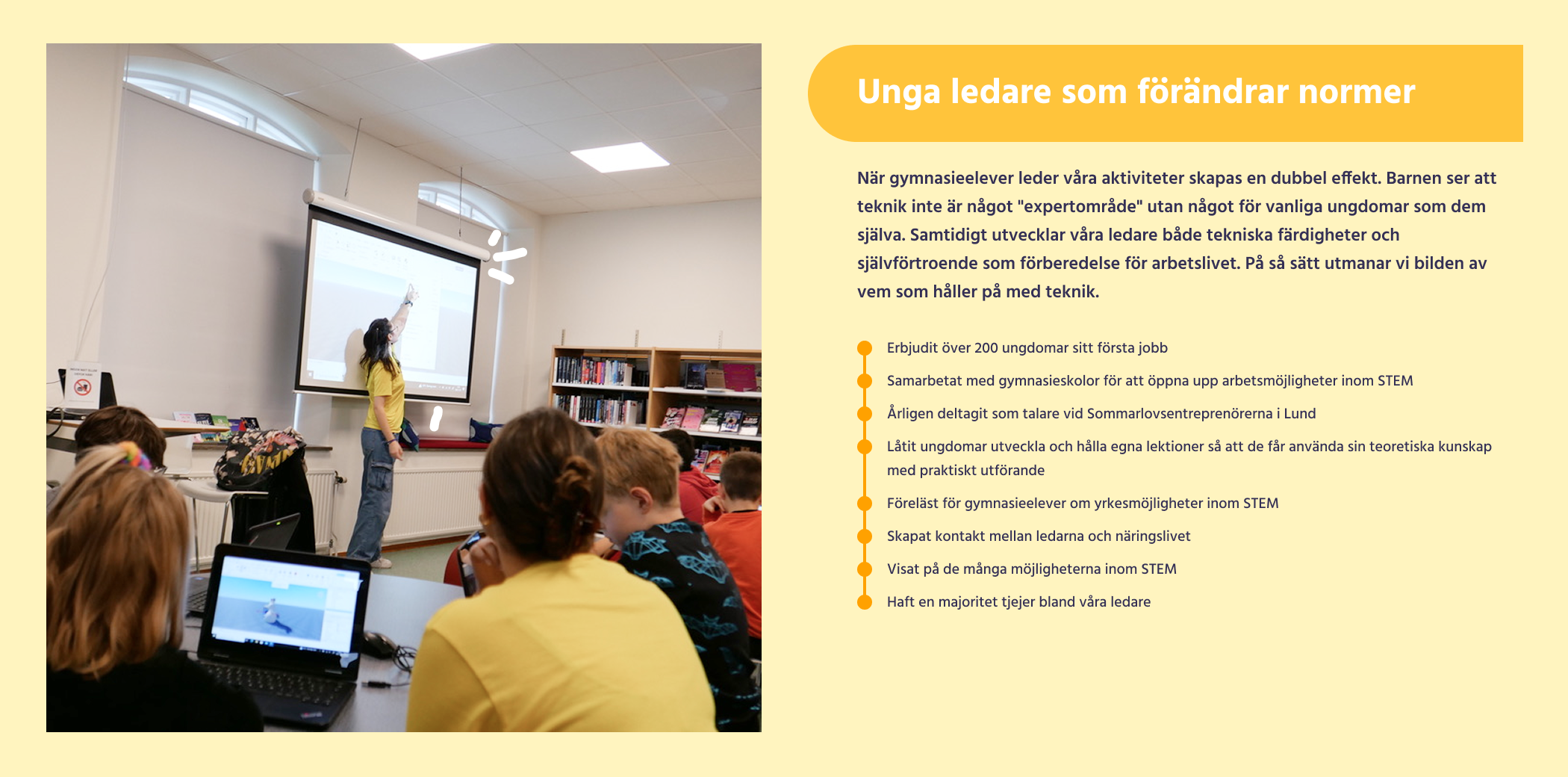Intresse för teknik och naturvetenskap väcks tidigast och starkast när det är roligt och utan press eller krav. Därför skapar vi fritidsaktiviteter för barn i mellanstadiet där de får utforska och skapa utifrån vad de själva tycker är kul och på sina villkor. Det bygger ett faktiskt intresse som håller över tid och påverkar framtida studie- och yrkesval.